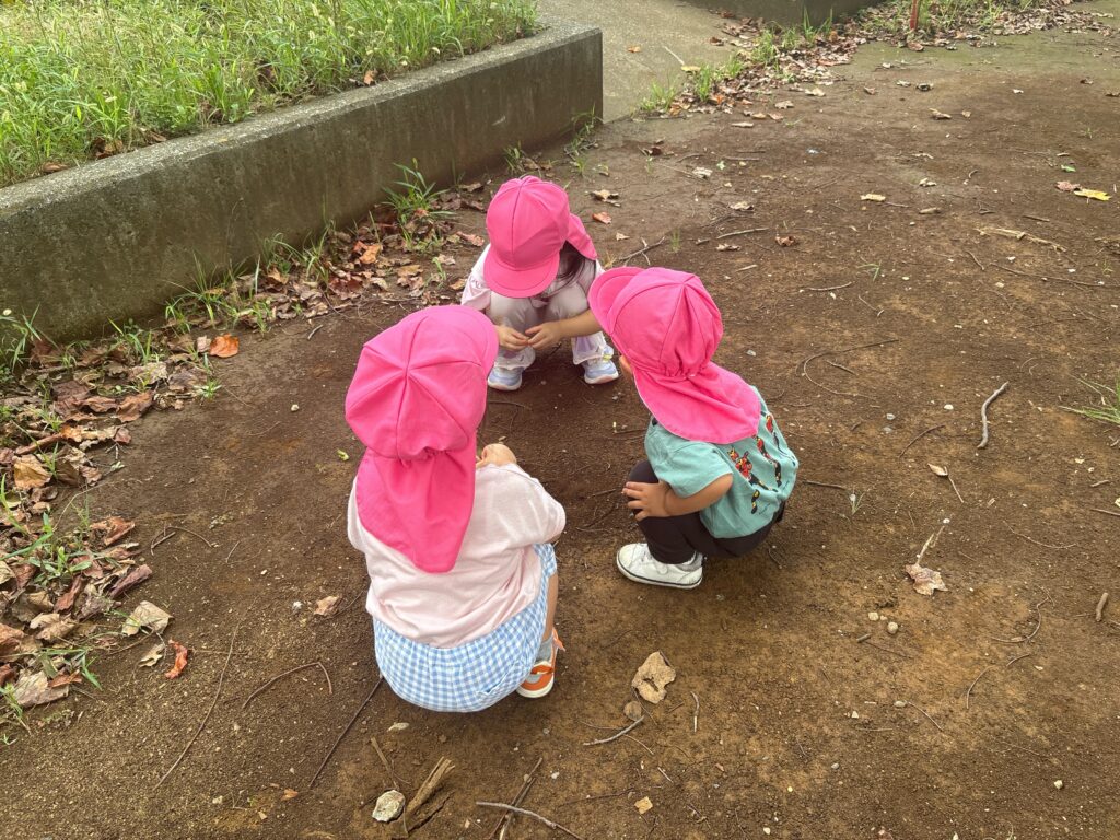 久しぶりぼお散歩は春頃と違って、手を繋いで上手に歩くことができたり自分だけではなく保育者やお友だちと探索を楽しんだりと、