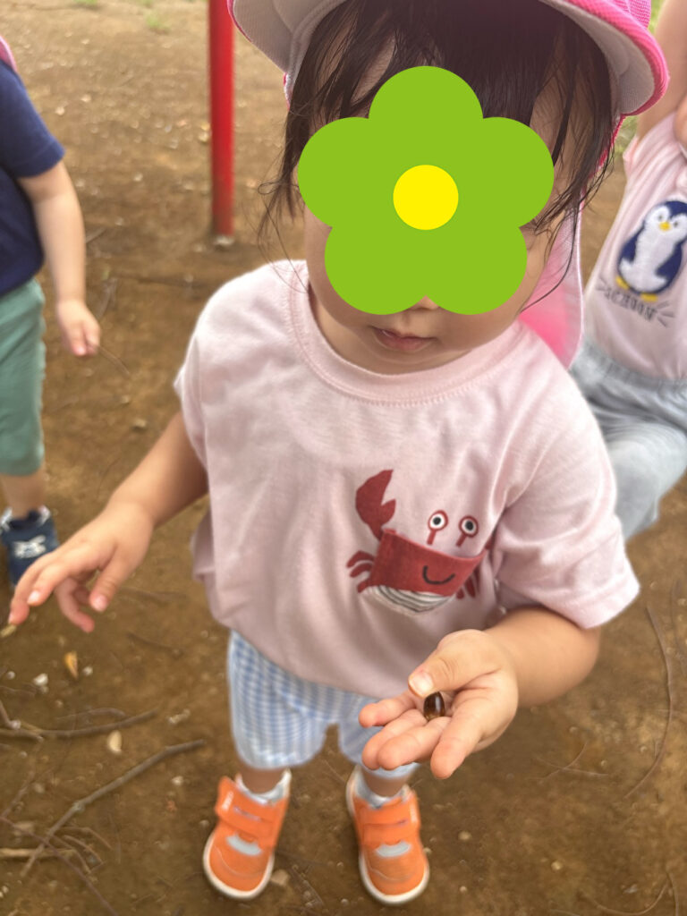 おや?こちらでは、なにかを見つけた様子。虫や木の実などを見つけるのがとても上手ですね!