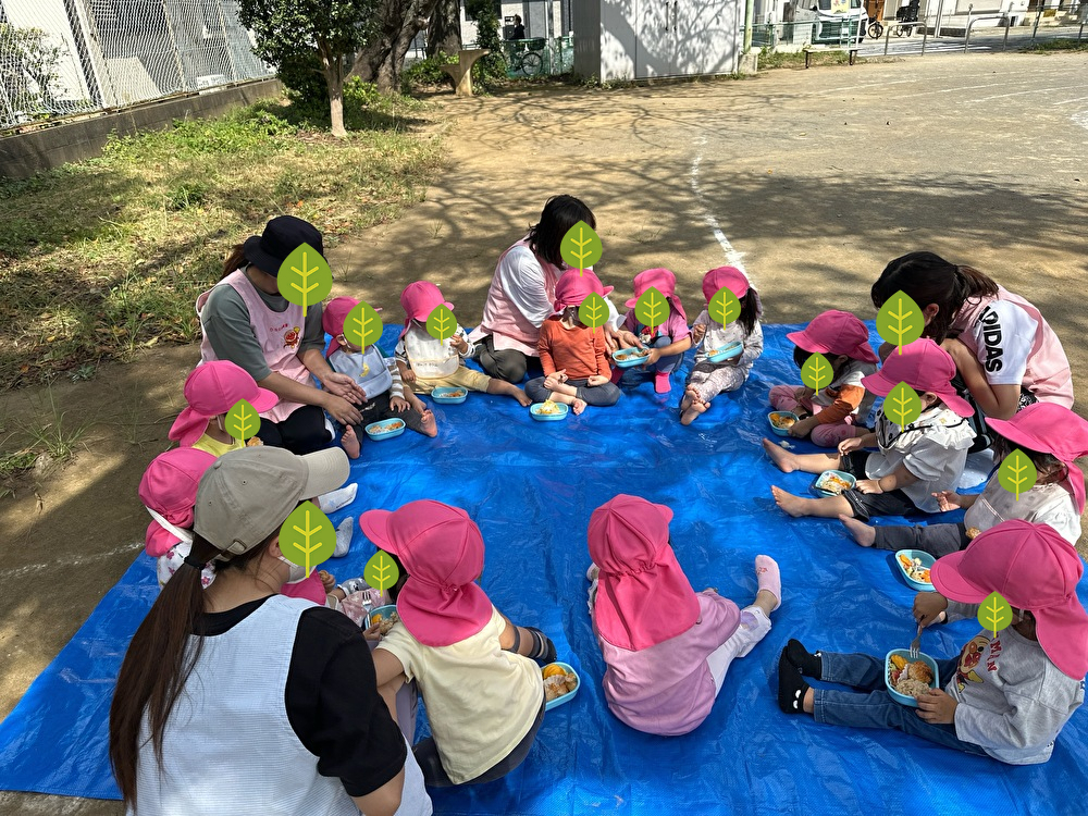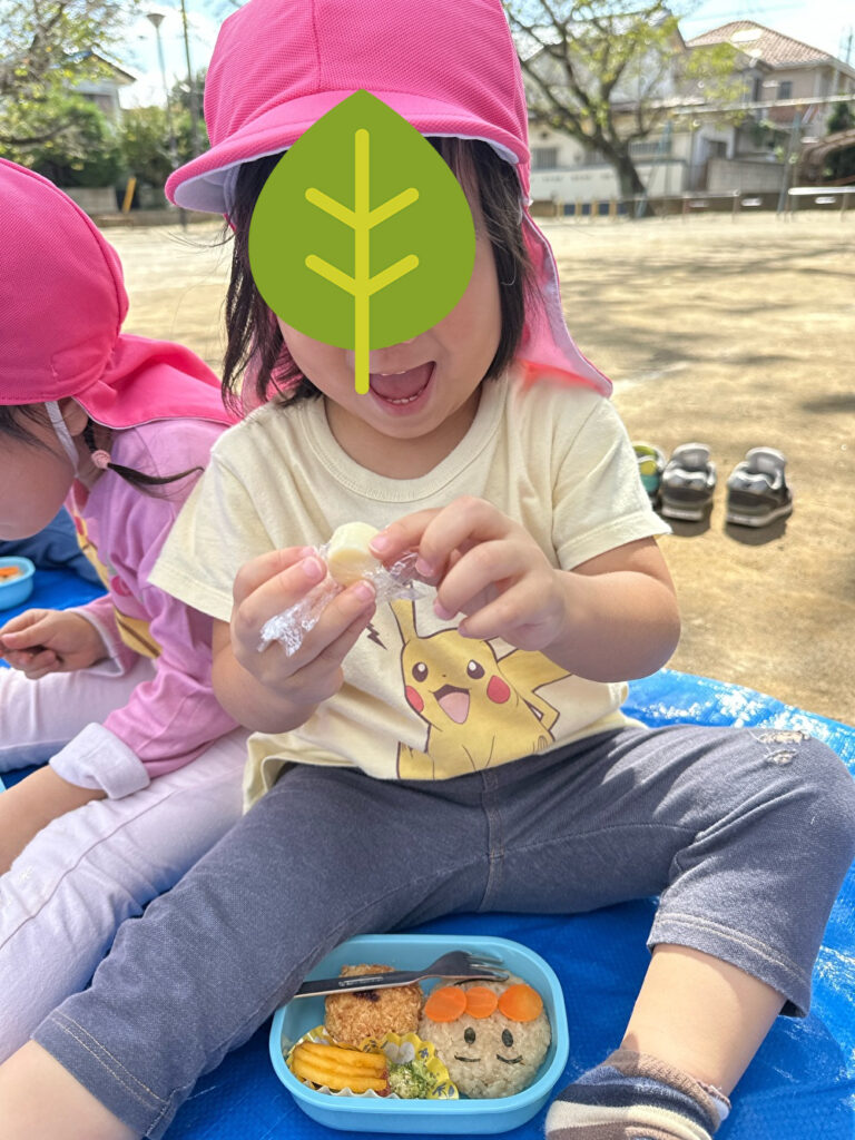 レジャーシートを敷いてみんなで食べるお弁当は普段と違った特別感があり、子どもたちもモリモリ食べていましたよ。