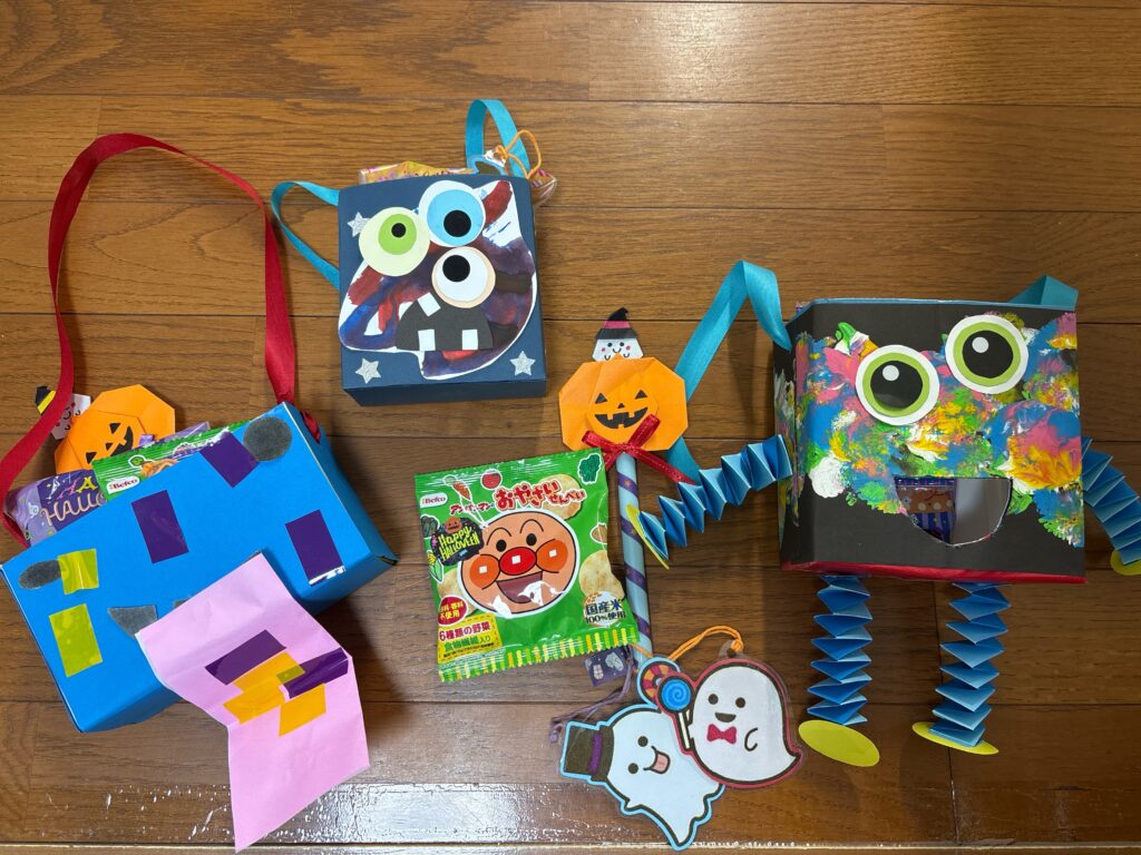 自分たちで作ったハロウィンカバンに大事にしまって持ち帰りましたよ。