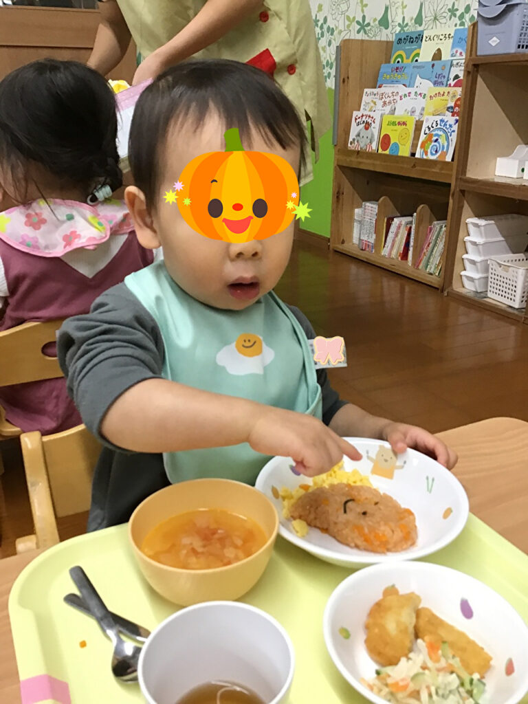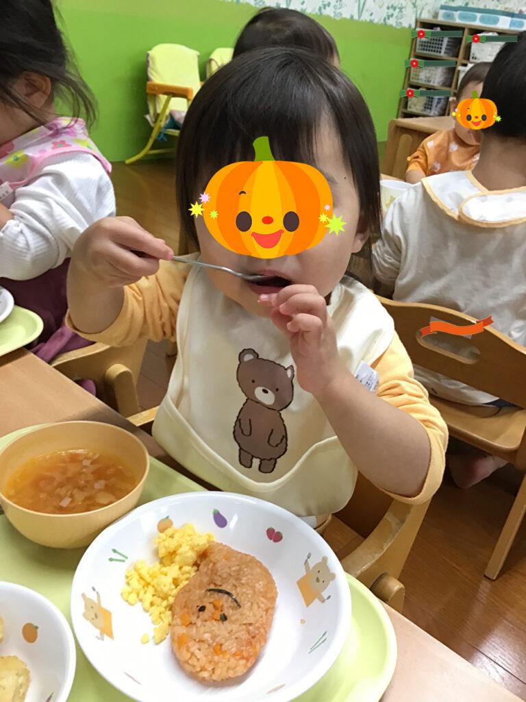 保育園に帰ってからは、ハロウィンメニューのお給食です!
