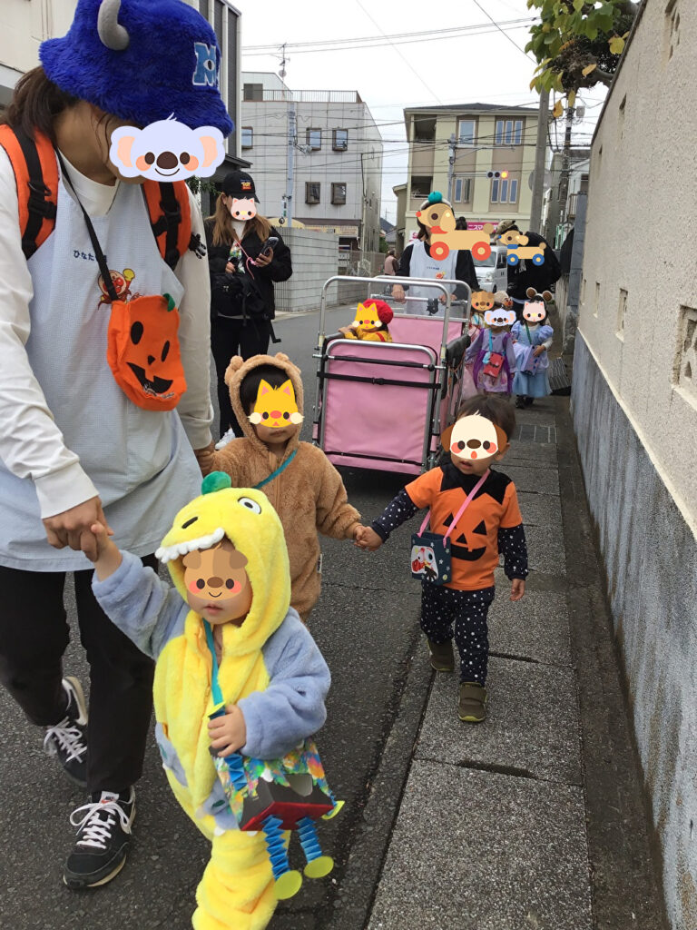 「トリックオアトリート!お菓子をくれなきゃイタズラしちゃうぞ~!」と言っていたので子どもたちがお菓子を配ってくれましたよ。