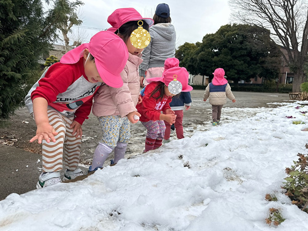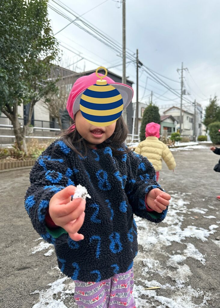 寒い日が続きますが、関東では珍しい「雪」が降り積もったので公園に遊びに行って雪遊びを楽しみました。