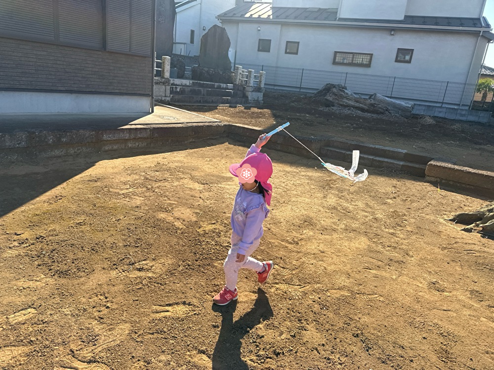 公園に持って行って凧あげをしました。上手に飛ばせたね!