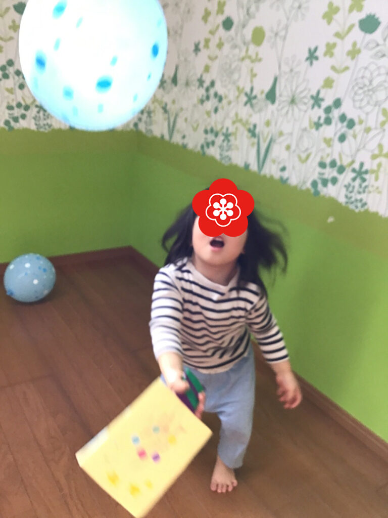 風船を使ってポーン!上手に出できました!