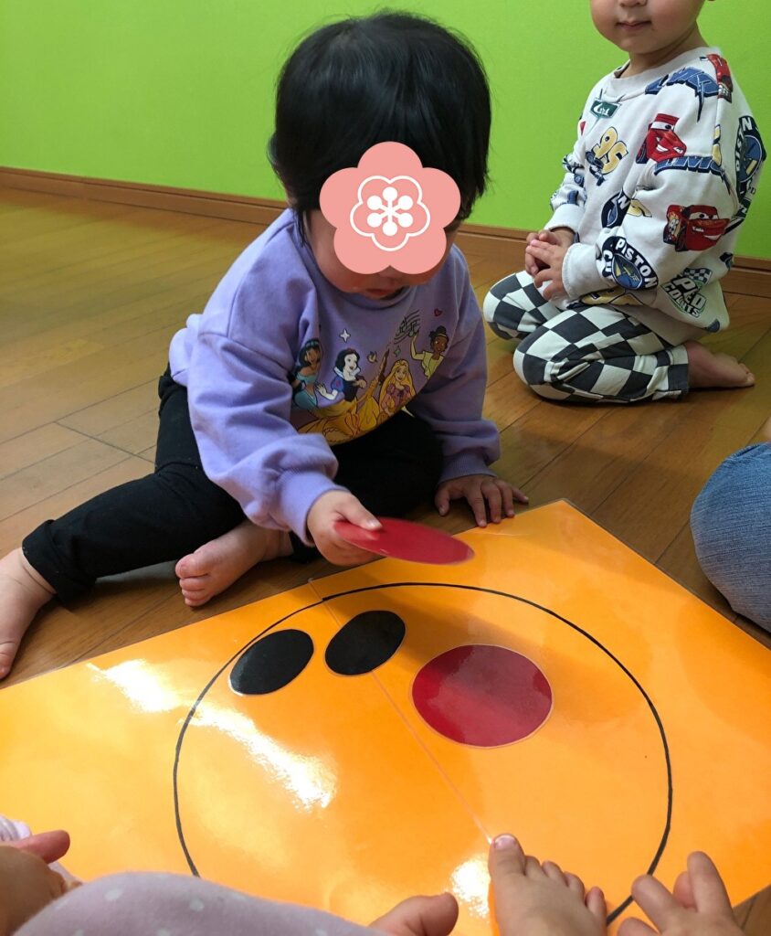 リトミックではアンパンマンの福笑い♪
