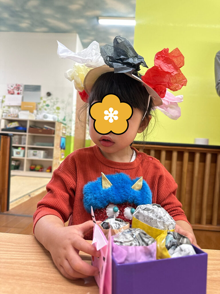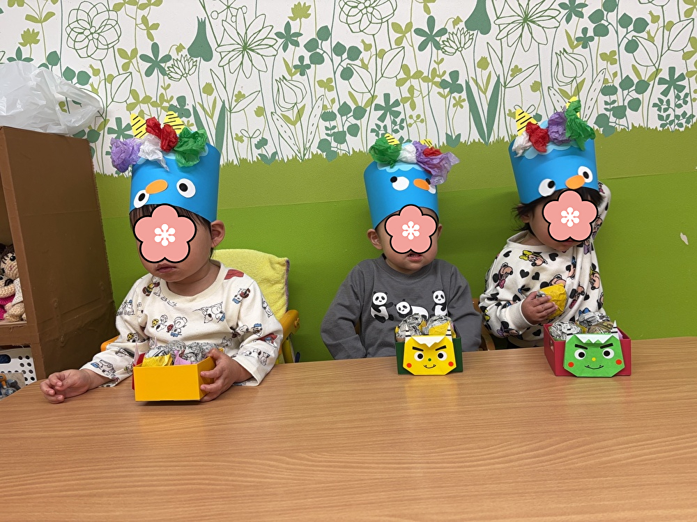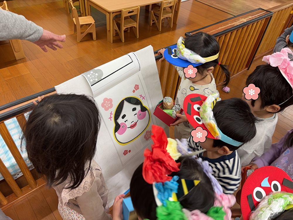 ひなた保育園では「豆まき」の歌を歌って節分の日が来るのを楽しみにしていました!