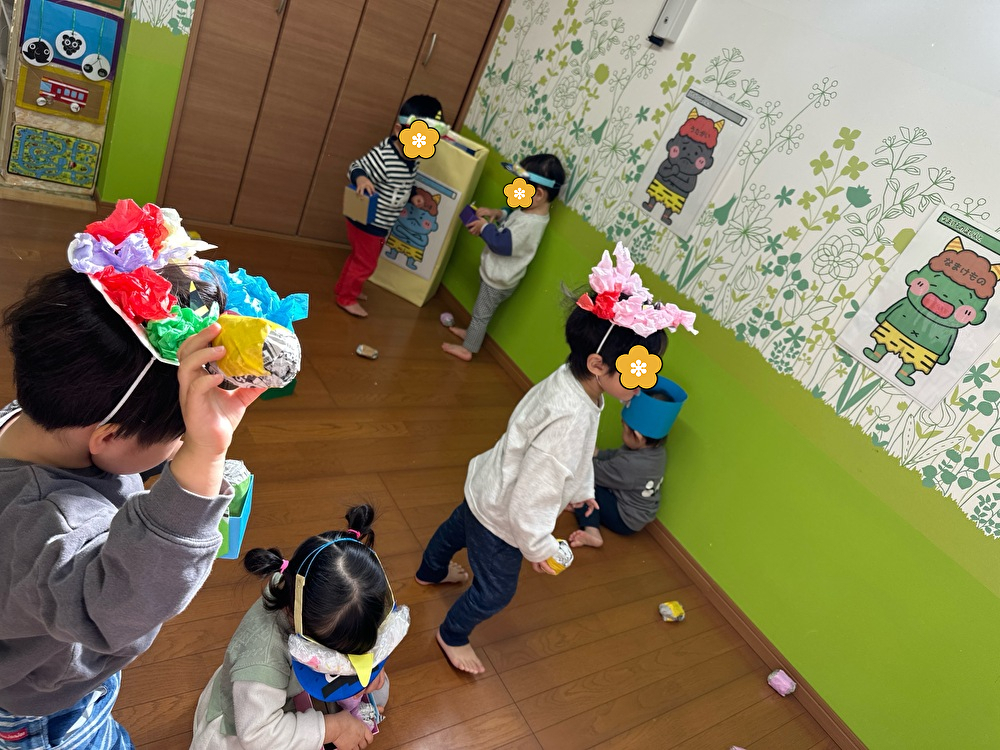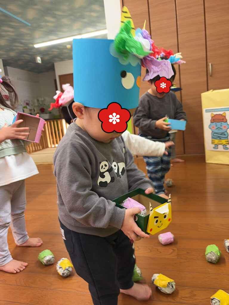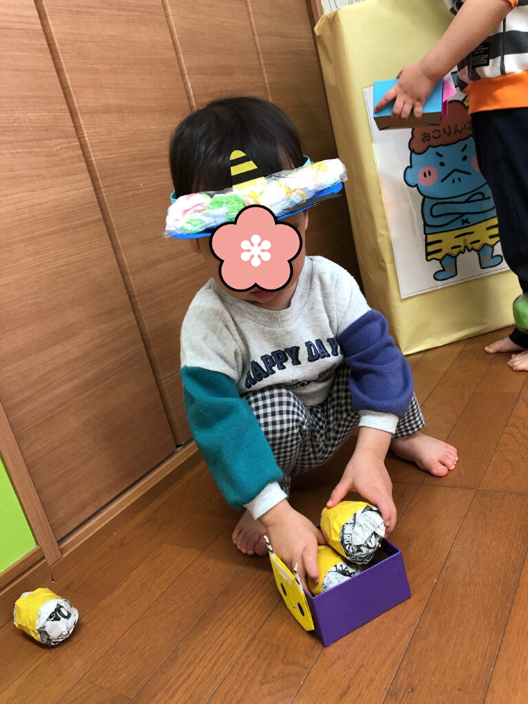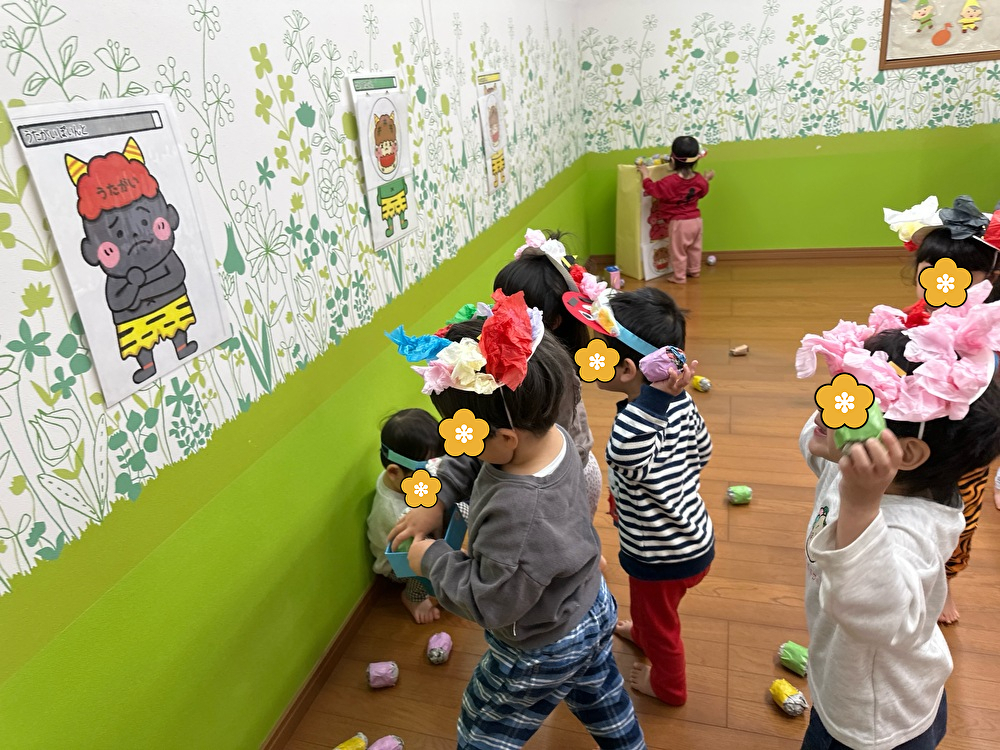 にじ組の部屋に鬼が現れたのでみんなで「鬼は外!福は内!」と投げました!